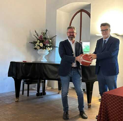Al termine della cerimonia Longhi ha regalato al sindaco un pallone da basket autografato da tutti i giocatori.