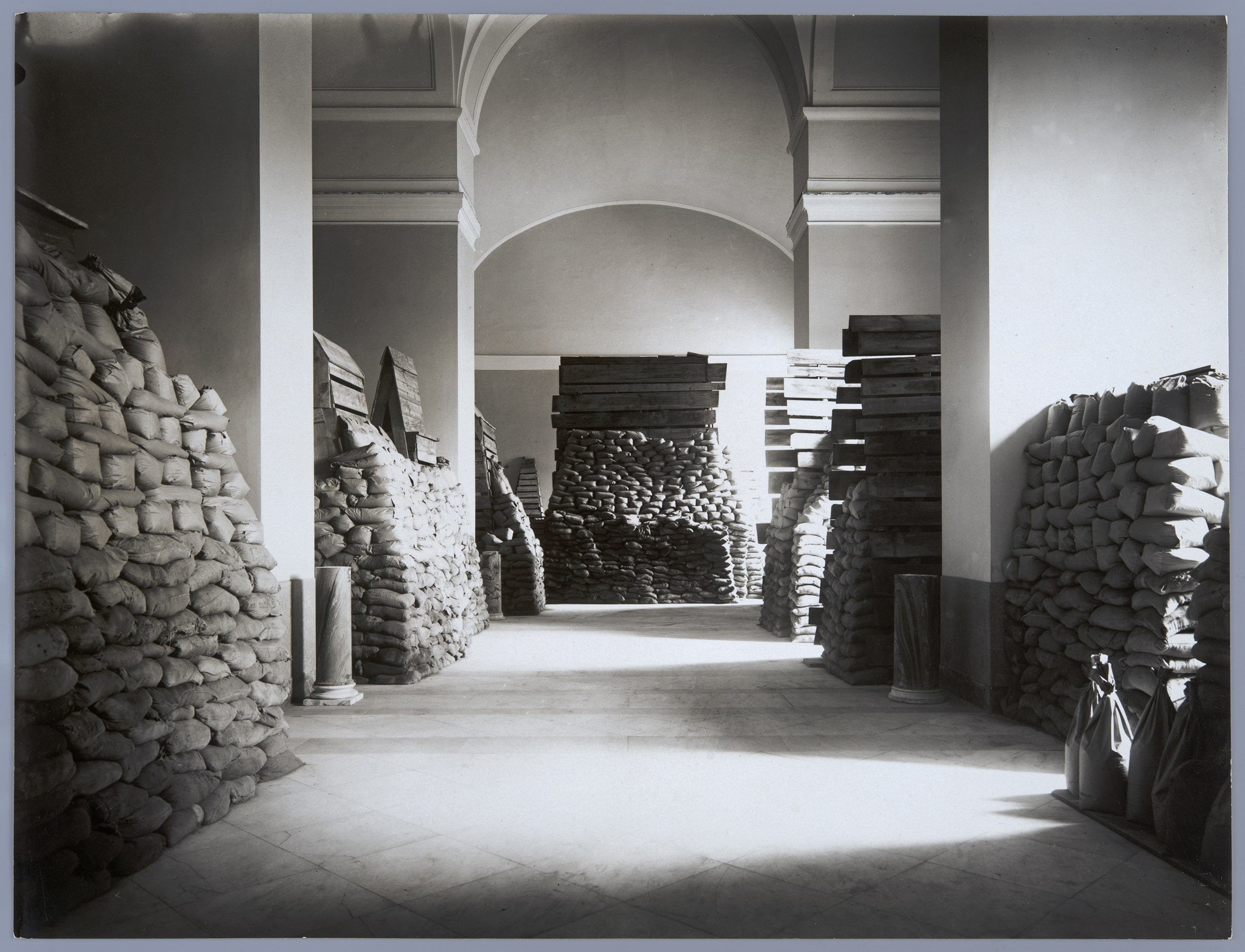 Contrassegnato dal marchio “Il MANN e la memoria”, l’itinerario in Galleria Principe di Napoli presenterà scatti dall’Archivio Storico del Museo e dalla Collezione di Gianmaria Lembo: nei pannelli dedicati agli “Scudi del MANN’, il racconto della febbrile attività di salvaguardia delle opere d’arte, in alcuni casi protette nei depositi oppure, se inamovibili, circondate da sacchi di juta e sabbia. Resta emblematico il trasporto, voluto dallo stesso Maiuri, di 87 casse, contenenti  bronzi, argenti, gemme, monete e medaglie, partite dal Museo alla volta dell’Abbazia di Montecassino.