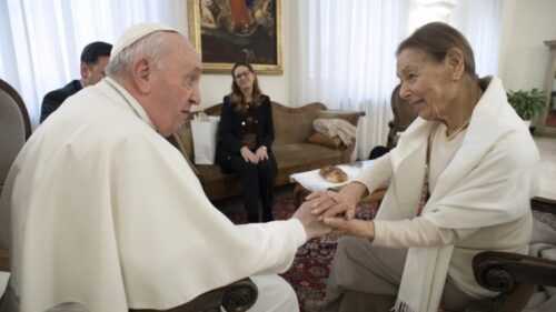 Papa Francesco aveva incontrato per la prima volta Edith Bruck lo scorso anno. Le aveva fatto visita nel suo appartamento nel centro di Roma, dopo aver letto su L’Osservatore Romano una toccante intervista in cui la donna raccontava la profondità dell’abisso che lei e la sua famiglia hanno sperimentato nel tempo della persecuzione nazista. “Sono venuto qui da lei per ringraziarla della sua testimonianza e rendere omaggio al popolo martire della pazzia del populismo nazista”, aveva detto Papa Francesco in quell’occasione, aggiungendo la richiesta di perdono al Signore “a nome dell’umanità”. Parole che il Pontefice argentino non ha mai smesso di ripetere dinanzi a quella che, proprio ieri, al termine dell’udienza generale, ha definito una “pagina nera” della storia dell’uomo segnata da una “indicibile crudeltà”.