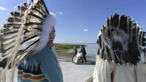 Desiderio – per il Papa e per gli indigeni – oggi realizzato con la Liturgia della Parola celebrata a metà pomeriggio (ora canadese), dopo la Messa mattutina nel Commonwealth Stadium di Edmonton con 50 mila fedeli. Molti sono ora presenti nella distesa verde che circonda il lago, a ripararsi con ombrelloni dal sole o poggiati alle transenne con numerosi rosari in mano oppure sulle barche in mezzo al lago. Vicino la riva sorge un’antica chiesa parrocchiale, ricostruita nel 2009 dopo un incendio, che il Papa raggiunge in sedia a rotelle accolto da sacerdoti e fedeli. E ancora in carrozzina, baciando durante il tragitto due neonati, Francesco arriva al pontile che guarda il lago, dove sosta in silenzio per alcuni istanti. Infine benedice l’acqua e, ripercorrendo il percorso a fianco alle transenne, con alle spalle i leader indigeni, asperge i fedeli.