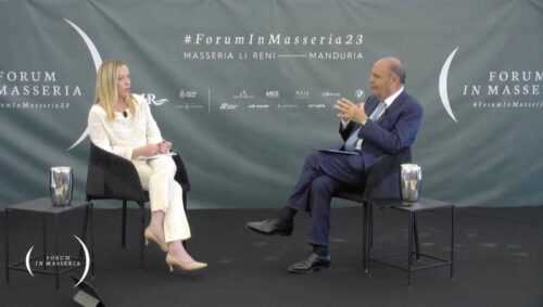 Tali fasti hanno dunque connotato il Vespismo mandurione modello Casa&Bottega con implicito collegamento promozionale ed endemico prolungamento nel Tg1, fenomeno così antico, compatto innervato in Rai da sfidare a viso aperto Fnsi, Laganà, Usigrai e Bria. L’anno scorso, prima delle elezioni i ministri convenuti al Forum in Masseria erano stati cinque, ma quando si dice il fiuto ecco che l’ospite d’onore, alla destra del king era apparsa proprio Meloni in abito lungo e già così carica da annunciare la comparsa in zona di una varietà di ciliegia cui era stato dato il nome di Giorgia, “ma non so se in mio onore” aveva precisato in umiltà.