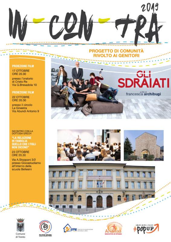 Il percorso autunnale propone due proiezioni gratuite del film Gli sdraiati di Francesca Archibugi, adattamento dell’omonimo libro di Michele Serra, giovedì 17 ottobre alle 20.30 presso l’oratorio di Cristo Re in via Bresadola 10 e martedì 22 ottobre alle 20.30 presso il circolo La Ginestra in via Abondi 9.