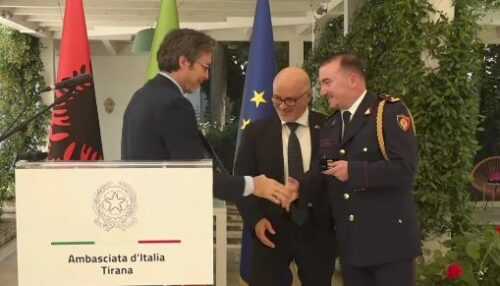 Le onorificenze, assegnate dal Capo dello Stato Sergio Mattarella, sono state materialmente consegnate dal nostro Ambasciatore in Tirana, Marco Alberti, al Direttore del Dipartimento di Polizia Criminale, Neritan Nallbati, e al Capo della Direzione Antiterrorismo, Alban Dautaj, nel contesto di una cerimonia svolta nella residenza diplomatica di Casa Italia alla presenza del Presidente dell’Albania Bajram Begaj e del Capo della Polizia Ilir Proda. Sono altresì intervenuti il magnifico Rettore dell’Università di Tirana, Artan Hoxha, e il Procuratore dello SPAK (la Procura speciale antimafia e anticorruzione) Adnan Xholi