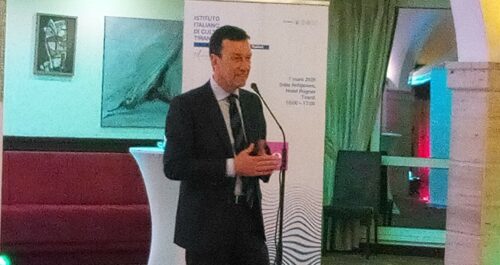 L’Ambasciatore italiano Marco Alberti: “La vostra così numerosa presenza questa sera, e domani, è molto preziosa, perché l’università e la formazione superiore sono strumenti formidabili di diplomazia e di dialogo, ancor più in una realtà come quella Albanese dove la conoscenza della lingua Italiana ha subìto un rallentamento nel passaggio dalla generazione precedente a quella attuale, passata dalla fruizione dei contenuti linguistici tramite internet anziché, come avveniva in passato, attraverso la televisione. Questo ha comportato una qualche prevalenza della lingua inglese, che a livello internazionale viene studiata e praticata per necessità, mentre la lingua Italiana viene studiata perché piace. Ecco, la missione dell’università è di infondere nozioni tecniche, strategiche per competere sulla scena internazionale, e valori umanistici dove la componente linguistica è essenziale. Ringrazio pertanto l’istituto di cultura, il personale dell’Ambasciata e tutti voi per essere qui, perché dove circolano le merci, e dove circola l’umanesimo, non circolano né le armi né le conflittualità né le tensioni”.