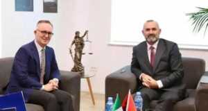 Dopo l’importante conviviale confronto avuto nei giorni scorsi con il Ministro delle Finanze on. Petrit Malaj, il vertice della struttura diplomatica Italiana in Albania, Fabrizio Bucci, è stato ricevuto dall’onorevole Ulsi Manja, dal 2021 Ministro della Giustizia nel terzo governo di Edi Rama.