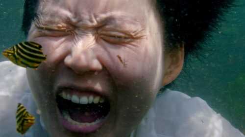 All’opera di Park rispondono i video Offering (2023) e Wreckage (2024) dell’artista Jane Jin Kaisen presentati con una doppia proiezione alla fine del percorso. Dalle immagini potentemente evocative e poetiche emerge il legame dell’artista con l’isola di Jeju e con le memorie storiche sommerse nelle sue acque, come il massacro dei civili del 1948 da parte dell’esercito sudcoreano. Kaisen richiama inoltre la relazione del luogo con forme di resistenza femminile, in quanto custode della cultura delle Haenyeo, le donne pescatrici apneiste.