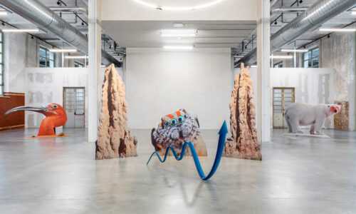 I nuovi spazi della Factory di Manifattura Tabacchi diventano lo scenario in cui le opere di Katja Novitskova si uniscono nel loro surreale e ironico dialogo, creando un’esposizione dissonante, fatta allo stesso tempo di partecipazione e alienazione per il pubblico. Nelle sue foto-sculture, parte della Collezione Sandretto Re Rebaudengo, l’artista riproduce in grande formato su lastre di alluminio sagomate e pannelli cartonati immagini di animali raccolte da internet come un coloratissimo ibis, un orso polare dal volto arrossato, un gatto o tre formicai. Con questo ciclo di lavori Novitskova vuole dimostrare come la nostra percezione dello spazio è stata alterata dal rapido sviluppo tecnologico e come il confine tra il mondo naturale e la sua versione digitale va dissolvendosi. Le fotografie hanno trasformato questi animali in immagini piatte e immateriali, prima che l’artista se ne appropriasse e restituisse loro, attraverso l’opera, le tre dimensioni; tutto avviene, però, in attesa degli scatti del pubblico, che li riporteranno all’inevitabile condizione di partenza. Ne risulta uno scambio continuo tra reale e virtuale, all’interno di un ciclo idealmente infinito.