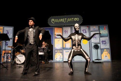 Performance interattiva ispirata al gioco dell’Oca, Cabaret Artico è insieme spettacolo da vedere e gioco a cui partecipare. La drammaturgia – dai personaggi alle scelte musicali – è ispirata al genere del cabaret e del teatro canzone, dai primi anni Venti agli anni Settanta, e coniuga canto, musica, racconto, scena teatrale, tra comico e drammatico, in un costante dialogo brillante e volte lievemente irriverente con il pubblico.