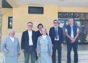 Un’altra tappa di rilievo, nella città UNESCO, ha avuto luogo presso la scuola “Mengjesit”, per un colloquio con le Suore italiane da due decenni in campo per progetti e attività di aiuto sociale e sostentamento materiale e di educazione indirizzate in special modo alle categorie più vulnerabili e ai bambini a rischio di dispersione e di fuoriuscita dal circuito didattico.