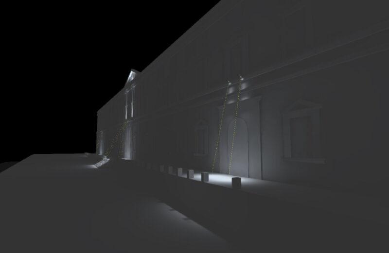 La cultura non si ferma: sui tre portoni, corrispondenti all’ingresso principale dell’edificio storico, al cosiddetto centro studi ed al lato degli uffici, sono installati fari che diffonderanno luce naturale e, dai prossimi giorni, anche colorata come la bandiera italiana.
