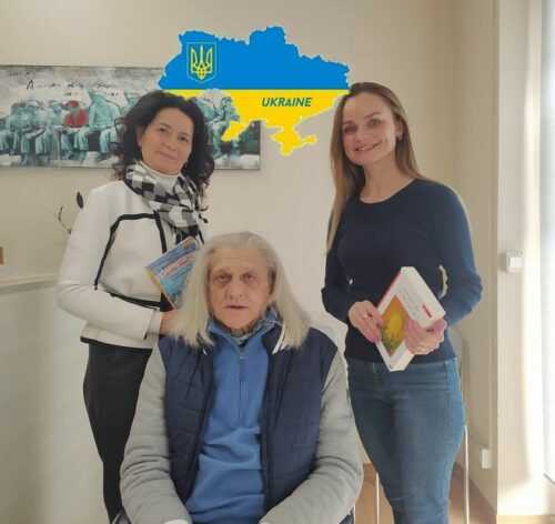 A Iryna Kupcjyk e Rosi Russino, oltre al dono dei suoi libri pubblicati dalla nostra casa editrice, l’impegno del poeta a diffondere “la loro mobilitazione per costruire concreta solidarietà. Solidarietà che, avendo già la fragranza della pace che tutti domandiamo, è già poesia”