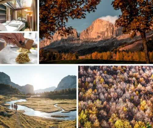 Per una vacanza indimenticabile l’Excelsior Dolomites Life Resort propone “Autumn special”, dal 9 settembre al 3 novembre 2024: 7 pernottamenti con pensione gourmet ¾ PLUS, libero utilizzo delle zone wellness nella Dolomites Sky Spa con una sensazionale piscina panoramica e nella Dolomites Family Spa per famiglie; un programma di escursioni guidate a piedi e in mountain bike in piccoli gruppi e tanti altri servizi a partire da 1099 euro per persona in camera doppia Fanes. www.myexcelsior.com