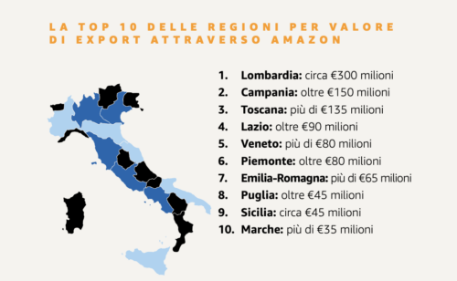 Le regioni italiane con il più alto valore di export attraverso Amazon