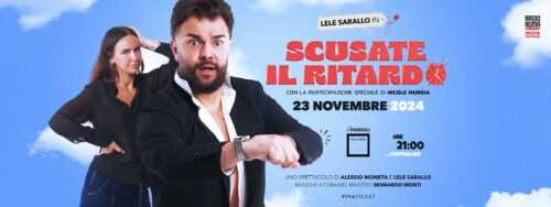 Lele Sarallo, noto speaker radiofonico e showman, amatissimo sul web per il suo umorismo tagliente e le sue parodie irriverenti, fa il suo esordio teatrale con lo spettacolo “Scusate il ritardo”, che andrà in scena sabato 23 novembre alle ore 21:00 al Teatro Il Parioli Costanzo di Roma. Un evento unico, dove sketch comici, interazioni con il pubblico e momenti musicali si intrecciano per creare uno show esilarante e coinvolgente, adatto a spettatori di tutte le età.