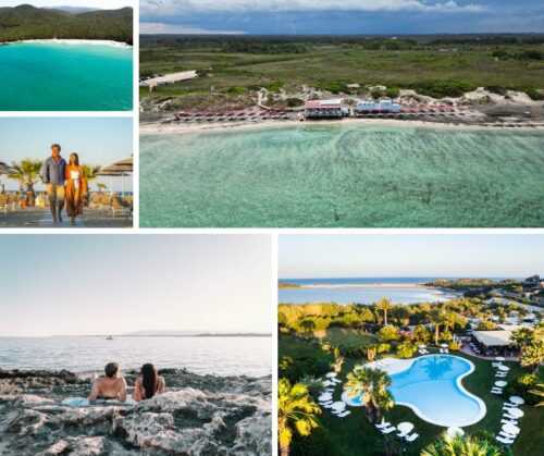 È tra le spiagge più belle della Sardegna, Su Giudeu, con le sue dune di sabbia trattenute da ginepri secolari, il mare smeraldino, il tenue colore dei graniti. Si può raggiungere a piedi (anche nudi) dall’Aquadulci, bellissimo resort a Chia (CA) dove l’estremo sud dell’isola tocca il mare. Ma sono tante le baie selvagge, le calette che svelano acque cristalline, le spiagge custodite dalla macchia mediterranea su cui passeggiare o godersi il sole da questo rifugio raffinato dalle camere e suite con giardino privato o terrazza vista mare, il bellissimo giardino intorno e la grande piscina open air, dove rilassarsi dopo le giornate sulla sabbia.