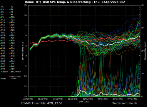 Dopo qualche giorno di anticiclone e di tepore primaverile, a cavallo del 25 aprile, gli spaghi meteo previsionali mostrano di nuovo un calo termico tra la fine di aprile e la prima decade di maggio.