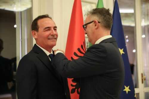 L’alta onorificenza di Cavaliere al Merito è stata conferita per il tramite del nostro Ambasciatore a Tirana, Fabrizio Bucci