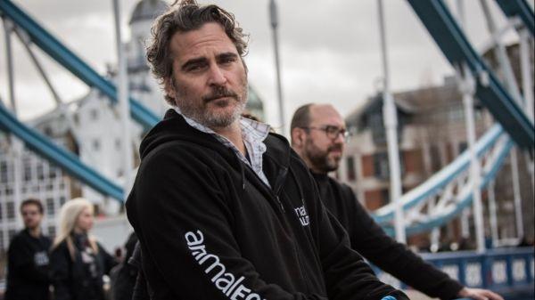 Joaquin Phoenix è noto anche per il suo impegno nella causa animalista, ad esempio Animal Equality, organizzazione internazionale per la protezione degli animali. L’attore ha partecipato, con altri attivisti, all’azione di protesta a Londra, sul Tower Bridge, organizzata per attirare l’attenzione sui danni che gli allevamenti intensivi causano agli animali e all’ambiente, esponendo uno striscione di 36 metri con la scritta “Gli allevamenti intensivi distruggono il nostro pianeta. Scegli vegan”. “Penso che abbiamo la responsabilità personale di agire in questo momento” ha spiegato Phoenix, “e un modo per mitigare i cambiamenti climatici è regolando i nostri consumi e scegliendo un’alimentazione a base vegetale. A volte sento che non si parla abbastanza di tutto questo. Quindi voglio solo incoraggiare le persone a informarsi di più su come mangiare a base vegetale e come fare la differenza per avere un impatto su questa vera e propria emergenza climatica”. Nel corso dell’azione, Joaquin e altri attivisti di Animal Equality hanno tenuto cartelli che denunciano la sofferenza degli animali negli allevamenti intensivi e l’impatto che questi hanno sull’ambiente e sul clima. Joaquin ha anche distribuito volantini e ha parlato con le persone che passavano per Tower Bridge, invitandoli a considerare una dieta “veg”.