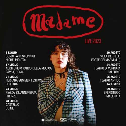 Madame torna dal vivo a partire dal mese di luglio, nelle principali location all’aperto d’Italia. Queste le prime date prodotte da Friends & Partners e Vivo Concerti, in collaborazione con Big Picture Management e Sugar: