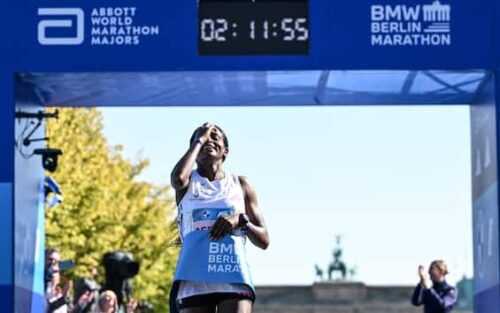 L’etiope è arrivata al traguardo alla Porta di Brandeburgo con un sensazionale tempo di 2 ore 11 minuti e 53 secondi, superando di 2 minuti e 11 secondi il precedente primato stabilito dalla keniana Brigid Kosgei, che aveva corso con un tempo di 2h14’04” a Chicago nel 2019. Nella gara maschile, il keniano Eliud Kipchoge ha vinto la sua quinta maratona a Berlino, in 2h02’42”, un tempo che non gli permette di migliorare il record del mondo di 2h01’09” stabilito lo scorso anno tra le strade della capitale tedesca.