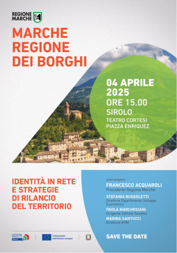 Se ne discuterà venerdì 4 aprile 2025, a partire dalle ore 15.00, al Teatro Cortesi di Sirolo, che ospiterà l’evento “Marche Regione dei Borghi – Identità in rete e strategie di rilancio del territorio”. L’incontro sarà occasione per approfondire le politiche regionali finalizzate alla valorizzazione e al rilancio turistico dei borghi marchigiani, con un focus sulle strategie di promozione e sviluppo economico attraverso la rete territoriale.