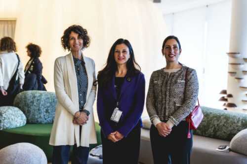 Infine, gli spazi esterni alle sfere offrono una varietà di esperienze: una parete tattile con texture naturali, funghi a mensola che stimolano l’olfatto, una parete compositiva con forme geometriche destrutturate per liberare la creatività e una parete delle impronte, un grande pannello in legno dove impronte e sagome prendono vita e un nuovo spazio relax per tutti e un nuovo spazio allattamento.