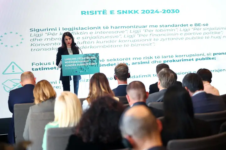 Il Ministro aggiunto di Stato, onorevole Adea Pirdeni, ha presentato ieri la Strategia intersettoriale anticorruzione per il periodo 2024-2030, messa a punto nel quadro del progetto “EU 4 Good Governance” finanziato dalla Commissione di Bruxelles. Si tratta del documento politico basilare che definisce gli impegni concreti da assumere da parte di ogni Istituzione per intensificare la lotta contro le zone di opacità amministrativa a tutti i livelli procedimentali e decisionali.