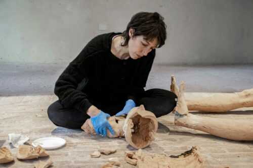 Si tratta di un’opera stratificata, composta da più fasi realizzative. L’artista ha creato una statua in terracotta di una giovane donna a grandezza naturale, con la quale Alice Toccacieli si è relazionata fino a urtarla e infrangerla a terra. Gheller ha poi lavorato alla ricombinazione di tutti i frammenti fino a dare nuova vita alla statua. L’opera ricostruita e il video della performance, insieme ad altre opere dell’artista, saranno esposti a Palazzo Paltroni, in via delle Donzelle 2, dal 16 al 20 maggio.