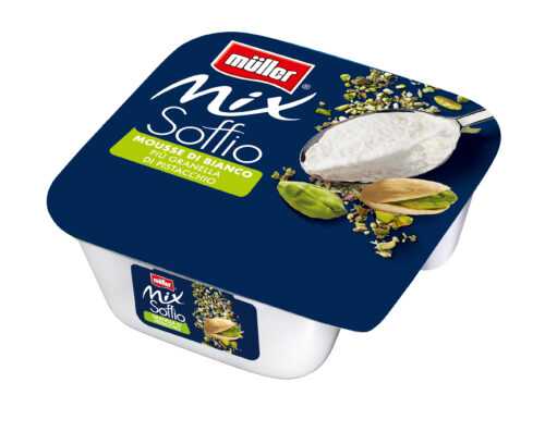 Muller Mix Soffio Pistacchio – mousse di bianco più granella di pistacchio, soffice, avvolgente e goloso, è assolutamente irresistibile in ogni momento della giornata: la mattina a colazione per cominciare bene la giornata, per una pausa di piacere o come coccola dopo cena.