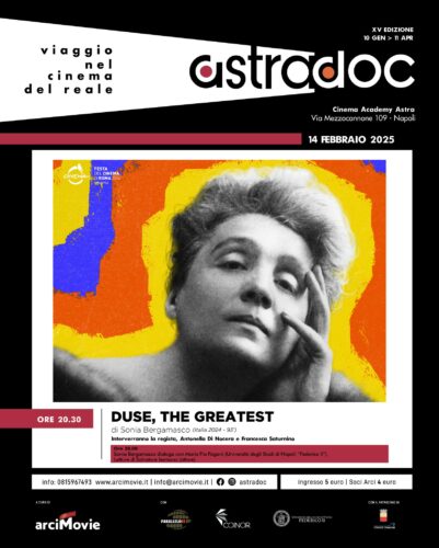 “AstraDoc – Viaggio nel cinema del reale”, la rassegna di documentari curata da Arci Movie giunta alla quindicesima edizione, ospita in esclusiva a Napoli Sonia Bergamasco per l’anteprima in città del suo documentario “Duse, the Greatest” che celebra la vita e la carriera di Eleonora Duse, la leggendaria attrice che ha influenzato diverse generazioni.