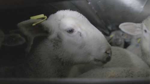 Gli agnelli ammassati all’interno del camion di quattro piani sono molte centinaia, belano e si agitano. Si tratta di un indicatore di comportamento animale che indica forte stress, fame e sofferenza. A solo poche settimane di vita sono infatti costretti ad un minimo di 19 ore di viaggio.