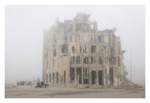 I lavori oggetto dell’esposizione sono stati realizzati nel dicembre 2018 e ritraggono la città di Mosul, in Iraq, nel momento della ricostruzione, pochi mesi dopo il terribile attacco che ha portato alla resa dello Stato Islamico. Il momento in cui la città ritorna, sorprendentemente, ad una vita quotidiana che immaginiamo impossibile, ma che risorge tra le crepe della distruzione, grazie alla capacità dell’essere umano di sopravvivere in condizioni avverse.