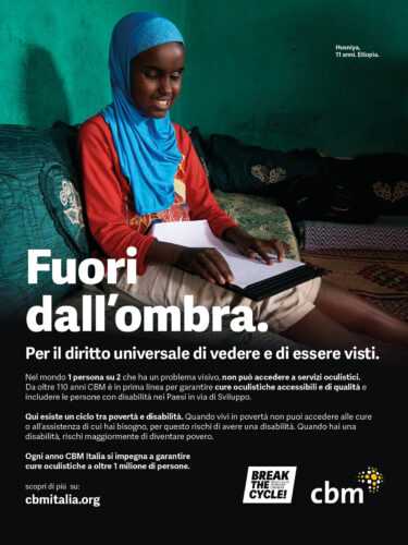 Condividendo questo obiettivo, CBM Italia lancia la campagna di sensibilizzazione “Fuori dall’ombra, per il diritto di vedere ed essere visti” che nel concreto si traduce nel garantire cure oculistiche a oltre 1 milione di persone in 1 anno in 9 Paesi del Sud del mondo, grazie a progetti con un approccio integrato che comprende prevenzione, cura e riabilitazione delle disabilità visive e inclusione nella comunità. Ne sono un esempio i progetti in Kenya e in Uganda.