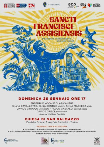 Per concludere segnaliamo, infine, i prossimi due concerti organizzati da Musicaviva a Torino. Sabato 1 febbraio ore 16:00, Real Chiesa di San Lorenzo, Piena sorgeva la luna, Ensemble Vocale Novi Cantores Torino. Musica di L. da Victoria, Claudio Monteverdi, Pizzetti; direttori Marta Dziubinska e Matteo Gentile. Ingresso Libero.