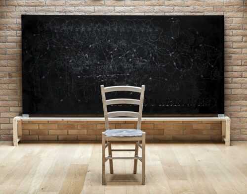 È così che H.H. Lim sceglie di azzerare tutto e ricominciare. Da dove? Da una semplice sedia. Una sedia con la seduta in alluminio su cui sono incise delle parole. Su questa, Lim invita il pubblico a sedersi e a interrogarsi per poter costruire la propria prospettiva. La mostra infatti è completata da un gruppo di oggetti-scultura, tra cui le famose sitting sculptures, che l’artista realizza fin dagli anni ‘80.