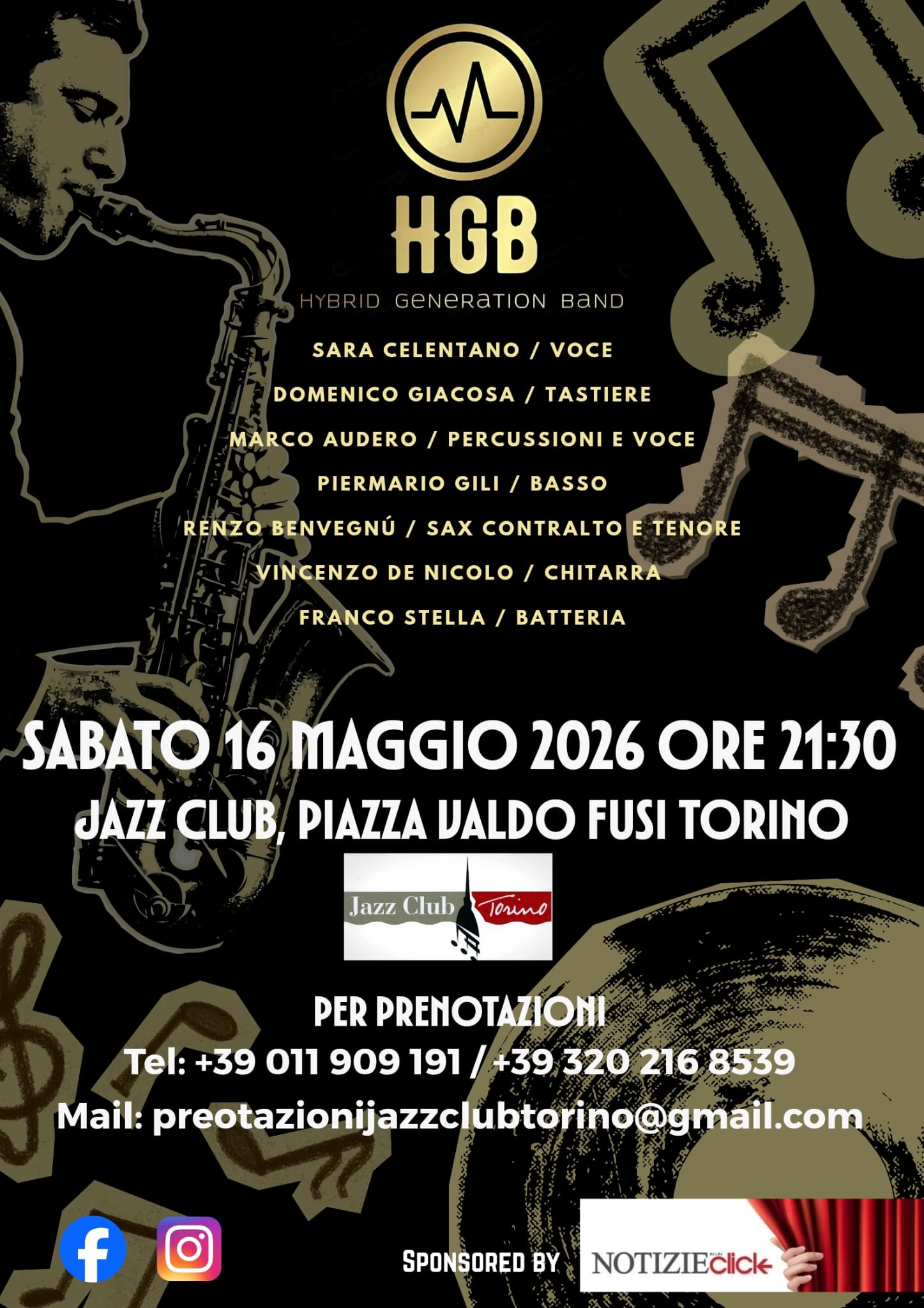 La Hybrid Generation Band è lieta di invitarvi al concerto per sabato 16 maggio ore 21:30 al Jazz Club Torino in Piazza Valdo Fusi.