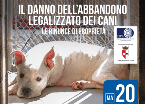 Il Comune di Piacenza e l’Organizzazione internazionale protezione animali (Oipa) invitano a partecipare alla conferenza gratuita sulle cosiddette “rinunce di proprietà”, che stanno aumentando in maniera esponenziale negli ultimi anni diventando un fenomeno sempre più preoccupante dal Nord al Sud Italia.
