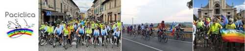 In questi giorni le 5 cordate PACICLICA di avvicinamento alla Marcia della Pace PerugiAssisi organizzate da FIAB stanno partendo rispettivamente da Roma, Brescia, Parma, Sarzana e Verona: più di 150 persone in bicicletta in viaggio da tutta Italia verso il capoluogo umbro. Tutti possono salire in sella e aggregarsi a uno dei gruppi di PACICLICA per raggiungere Perugia sulle due ruote (il dettaglio dei 5 itinerari sul sito di FIAB).