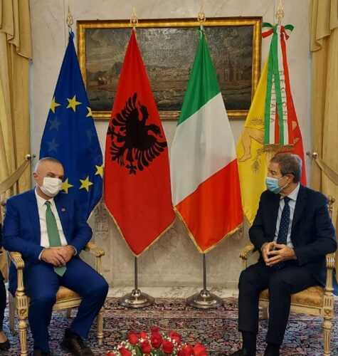 Il presidente Meta ha ringraziato Musumeci per l’accoglienza riservata e ha condiviso «l’iniziativa di una collaborazione che presti particolare attenzione alle comunità arbëreshe, soprattutto per la tutela e la difesa della lingua, che è patrimonio culturale e storico, eventualmente anche con l’emanazione di una legge ad hoc che possa tutelare la minoranza arbëreshe in Sicilia». Altro punto in comune con la Sicilia è quello di raccogliere la sfida del Mediterraneo. «Vogliamo rafforzare la dimensione mediterranea dell’Albania – ha detto Meta – collaborare sui temi che riguardano le calamità naturali, per imparare dalla vostra esperienza su alcuni settori e avviare un sostegno reciproco».