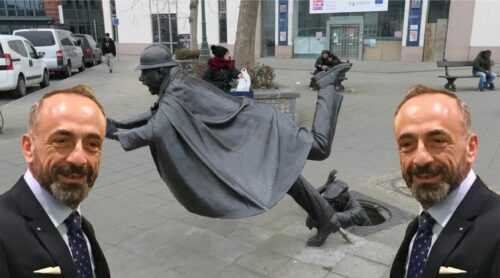 Vaartkapoen, ossia la “canaglia del canale”, qui rappresentata, è la statua che a Bruxelles si trova in piazza Sainctelette, e rappresenta, come in un fumetto, in una battuta, l’anarchia che vince sull’autorità: attenzione, arrivano i poliziotti!