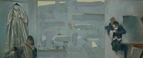 Alcuni lavori riflettono la sua ricerca degli ultimi anni mentre un paio di opere sono più lontane nel tempo: Ombra e cane del 2011 e Anfratto del 2017, la Barca orizzontale è del 2019, mentre appartengono al 2020, Bambina seduta, Interno e Interno esterno. In queste ultime – interni quasi metafisici dove s’intravedono, confuse nell’ombra, figure di fanciulli – dominano i rossi vivi. Sono ritagli di un esistenzialismo fortemente iconico, così come le altre composizioni dedicate ai ragazzi sorpresi in un interno o in barca. Sono del 2023 le opere Primo sole, Non lo so fare, Orizzontale.
