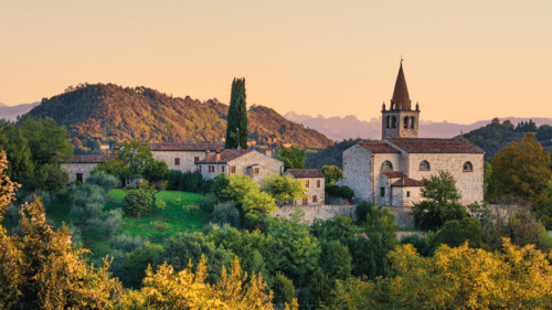 E, in effetti, questi coni che assomigliano a piccoli vulcani, le acque calde e benefiche che affiorano dalle sorgenti, le vallate che mutano colori ed essenze ad ogni curva, i borghi, i monasteri, le ville, i castelli, i magnifici giardini costituiscono le mille facce che in modo naturale si riconducono a quell’insieme che fa degli Euganei un unicum in Italia e in Europa.