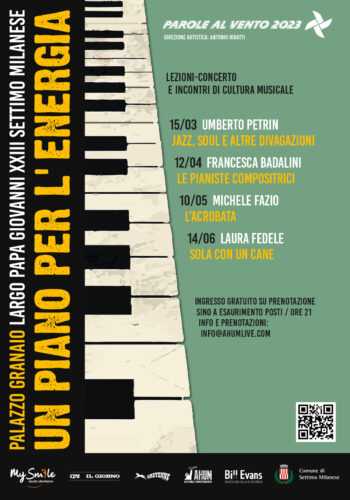 MILANO – Si svolgerà a Settimo Milanese la nuova edizione della rassegna “Parole al vento”, ciclo di appuntamenti – a cavallo tra i radio-show e le lezioni-concerto – nel segno della interdisciplinarità tra musica, arti visive e nuovi linguaggi. La manifestazione, il cui sottotitolo quest’anno è “Un piano per l’energia”, è in programma dal 15 marzo al 14 giugno e coinvolgerà, senza distinzione di generi, quattro apprezzati pianisti, quattro protagonisti della musica contemporanea: Umberto Petrin, Francesca Badalini, Michele Fazio e Laura Fedele.