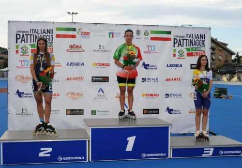 Ai campionati italiani su pista di Pollenza (Macerata) la pattinatrice della Polisportiva Casier conquista il titolo nei 500 metri sprint ed è terza nel giro crono ad atleti contrapposti