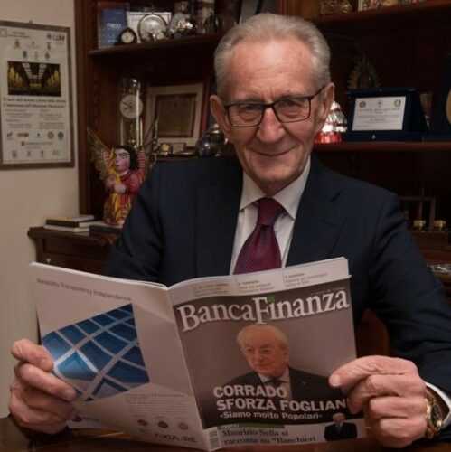 Corrado Sforza Fogliani, dal 1986 al 2022 al vertice del comitato esecutivo della Banca popolare di Piacenza, ha legato altresì il proprio nome alla presidenza della Confedilizia, la confederazione della proprietà immobiliare, nonché alla guida di AssoPopolari, l’associazione fra gli istituti di credito giuridicamente inquadrati come banche popolari. Egli ha inoltre coadiuvato Patuelli nel ruolo di vicepresidente di Abi, nel cui ambito ha sviluppato altresì un legame di amicizia, stima e collaborazione con Beppe Ghisolfi sui temi dell’educazione finanziaria.