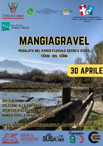 MANGIA GRAVEL è aperta a tutti, trattandosi di una libera escursione individuale, i partecipanti saranno comunque coperti da polizza assicurativa cumulativa fornita da C.S.A.I.n tramite ASD Susa Bike ed è prevista la presenza di accompagnatori professionisti.