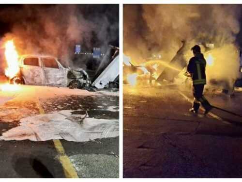 Altri complici hanno impedito l’arrivo delle forze dell’ordine parcheggiando auto e fugoni rubati di traverso lungo tutte le vie di accesso alla zona. Poi hanno dato fuoco ai veicoli. La banda ha anche disseminato le strade con chiodi a tre punte. I ladri hanno rubato dai camion e dal magazzino materiale tecnologico per un ingente valore.