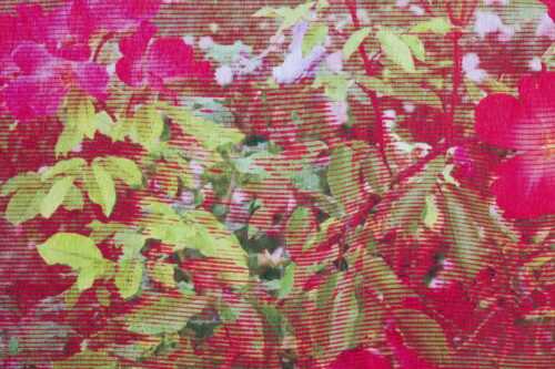 La carta da manifesto pubblicitario appositamente lavorata dall’artista in modo casuale crea un effetto materico che sembra trasformare le stampe in dipinti. Lo spazio centrale della galleria accoglie un secondo allineamento, dopo quello realizzato in esterno nei pressi della palma del Cile, composto da mobili già presenti in loco, che si lasciano apprezzare per le loro fattezze e che supportano piante da interno e fiori, a testimonianza di come il dialogo continuo tra la sfera artistica e quella naturale sia una delle dominanti della mostra.