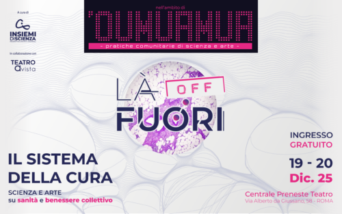 Una fotografia scattata dallo Sportello sanitario Mammut di Rebibbia dai contorni allarmanti che sarà presentata il prossimo weekend a LÀ FUORI OFF – IL SISTEMA DELLA CURA (spin off ufficiale di LÀ FUORI – FESTIVAL DELLA SCIENZA E DELL’ARTE che si tiene annualmente nel mese di giugno a Roma) iniziativa inserita nel progetto ‘Oumuamua pratiche comunitarie di scienza e arte. Venerdì 19 e sabato 20 dicembre il Teatro Centrale Preneste (Via Alberto da Giussano, 58) ospiterà quattro appuntamenti che uniscono scienza e arte, per portare la voce di esperti scientifici e artisti e artiste sempre più vicina ai cittadini e alle loro reali necessità.