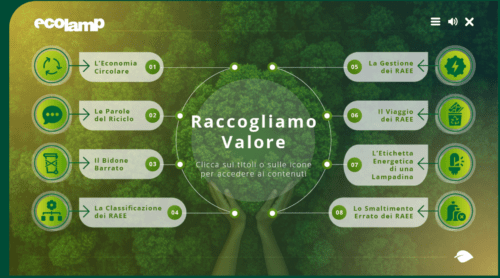 ‘Raccogliamo Valore’ si rivolge invece a due diverse fasce d’età – dagli 8 ai 12 anni e dai 13 ai 18 – ed entrambi i percorsi, adeguati ai due differenti piani didattici, sono stati pensati e voluti da Ecolamp per diffondere conoscenze sui RAEE, per generare consapevolezza sulla necessità di recuperare le materie prime di cui sono composti e – in un’ottica di economia sostenibile e circolare – per diffondere consigli pratici su come gestire una lampadina o un qualsiasi altro apparecchio elettrico o elettronico esausto. Entrambe le iniziative sono totalmente gratuite. Ulteriori informazioni sui contenuti e le modalità di iscrizione a ‘Raccogliamo Valore’ e ‘Facciamo Luce’ sono disponibili sul sito di Ecolamp alla pagina dedicata ai servizi per la Scuola.